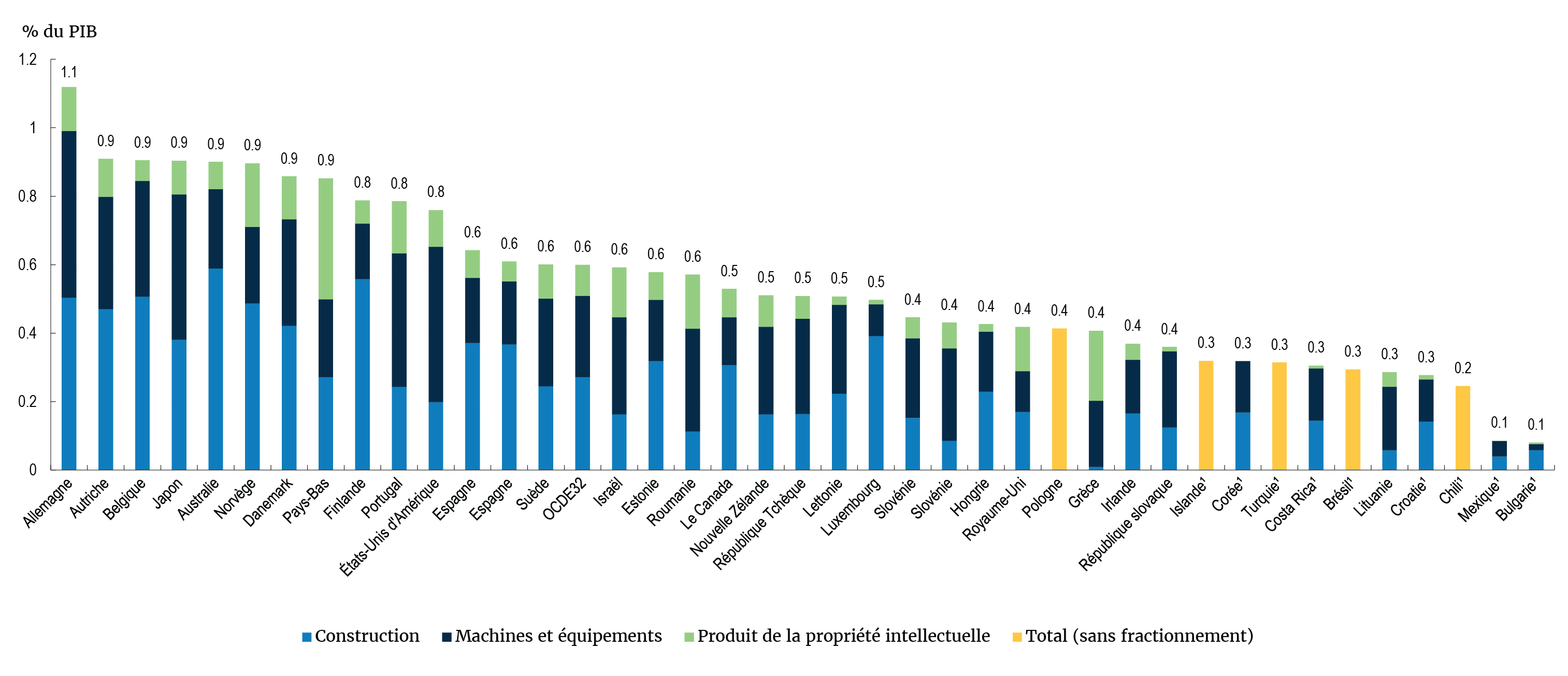 Dépenses annuelles en capital consacrées à la santé et l’action sociale en pourcentage du produit intérieur brut, moyenne sur 2017-21 (ou année la plus proche) par type d’actif