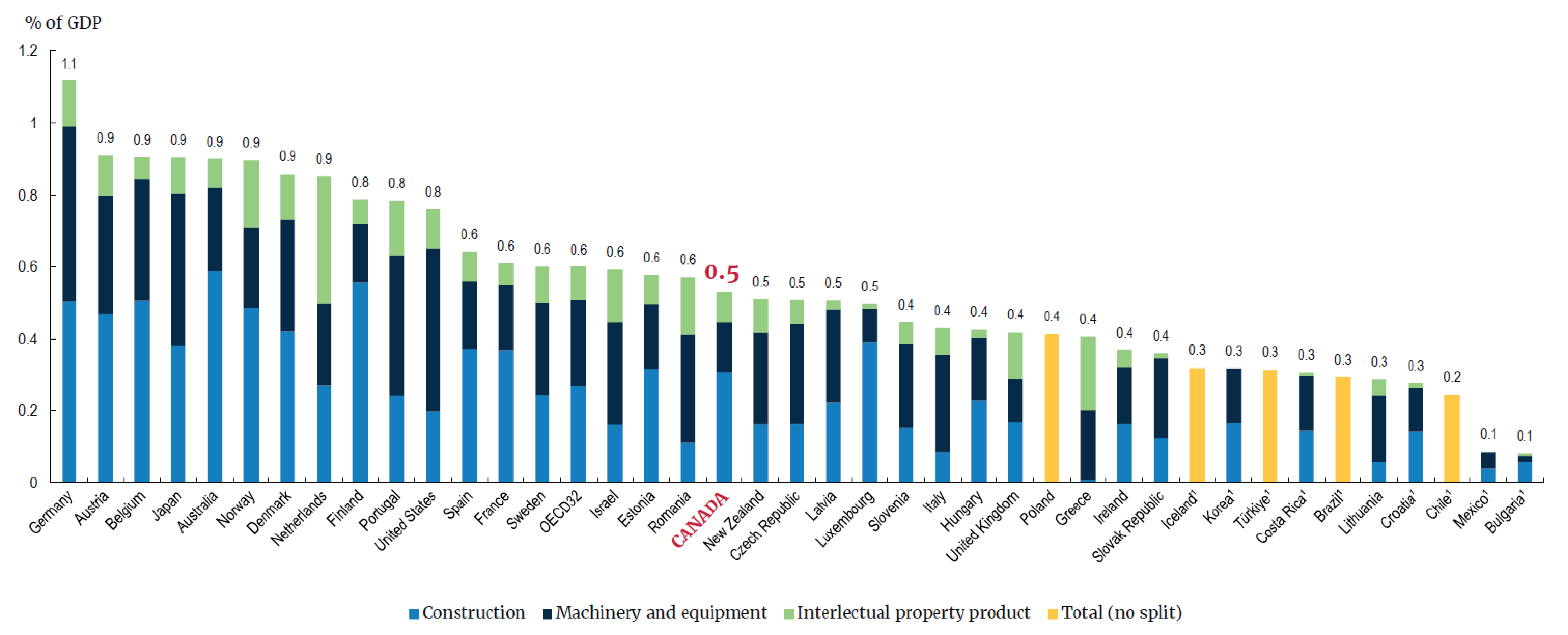 Annual capital expenditure in health and social work as a share of gross domestic product, average 2017-21 (or nearest year) by type of asset